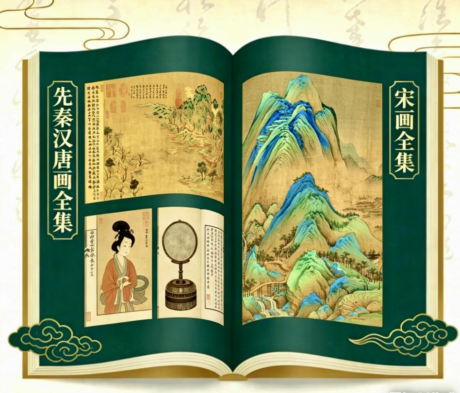 在时光长河的悠悠流淌里,总有一些笔墨,悄然点亮华夏文脉的诗意。图书馆的珍贵馆藏——《先秦汉唐画全集》与《宋画全集》,便是这般存在。它们宛如一部无声的史书,诉说着千年前的雅致与风骨。