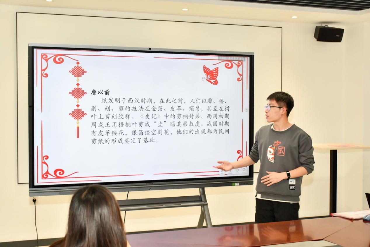 随后,主讲嘉宾孙圣涵登台,为在场师生细致讲解了剪纸艺术的历史源流与工艺特点。